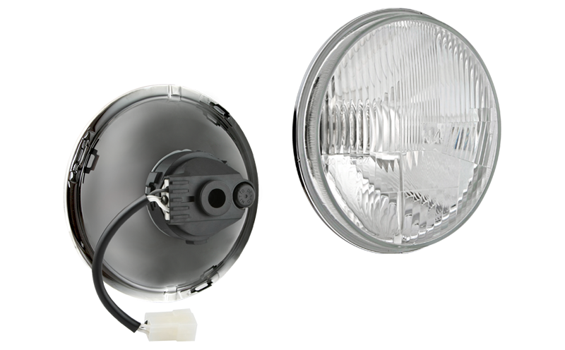 bulb H4 12V, AMP Faston connector, tunnel frame, manual levelling unit, bulb holder IP66, cable 0,1 m