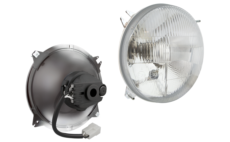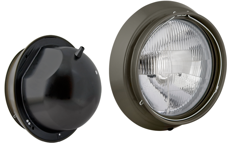 bulb H4 24V, AMP Faston connector, tunnel frame, manual levelling unit, bulb holder IP66, cable 0,1 m