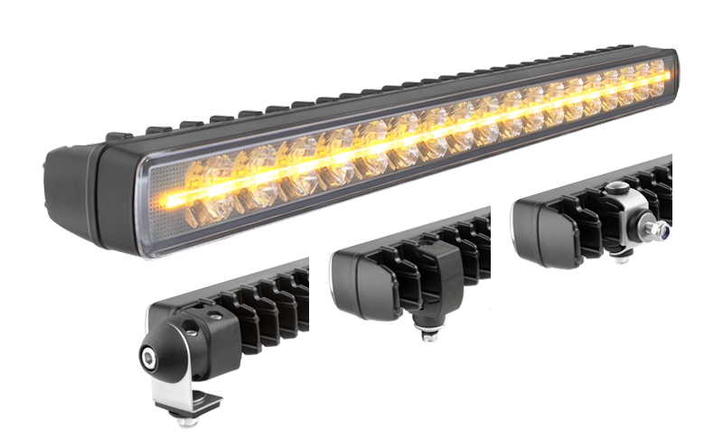 LED work lamp with orange position light and holders: rear, bottom, side